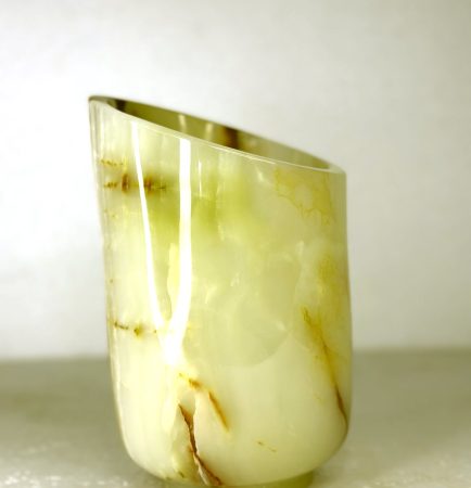 Candle holders in stone add a warm, ambient glow to your personal space. Each piece is hand-shaped to reflect artisanal craftsmanship while taking full advantage of the translucency and natural patterning of onyx. Whether used during a relaxing bath or as a centerpiece for romantic settings, these holders bring a calm, elegant atmosphere.